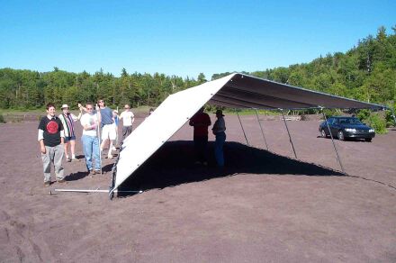 | Day 2 - The tent was set up with less trouble this year since we knew how all the parts fitted together. Though the weather was great (clear and cool) this tent was a great place to get out of the sun and rest between Berserker activities. | |
