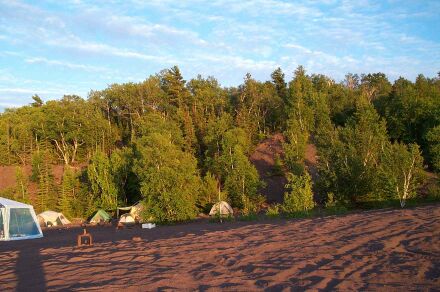 | Day 1 - Before the Berzerker we took a little (10 mile) hike around Pictured Rocks. This is Chapel Beach looking East. | |