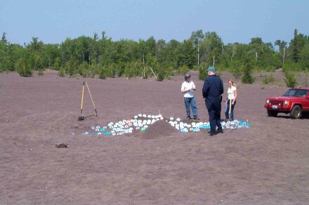 | Day 5 - The results of a successful crushing. The last, and most powerful, test not only crushed the can but sent the top part flying across the sand. Next year we may see the coin crusher in action. | |