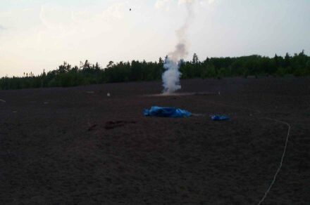 | Day 5 - First test of the Smoky Rocket. The idea was to inject oil into the exhaust of a rocket to make the trail more visible. Regular motor oil was used in this test. This worked but the nozzle, which had been sealed with wax, did not fully open. | |