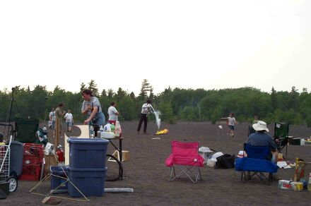 | Day 5 - The can crusher set up on the sands - we lacked the Tesla Coil this year but the crusher made up for it. | |