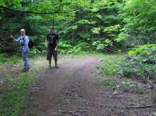 Dale chooses the point were we leave the road. She has the GPS but Greg is not all that sure about this route... |
