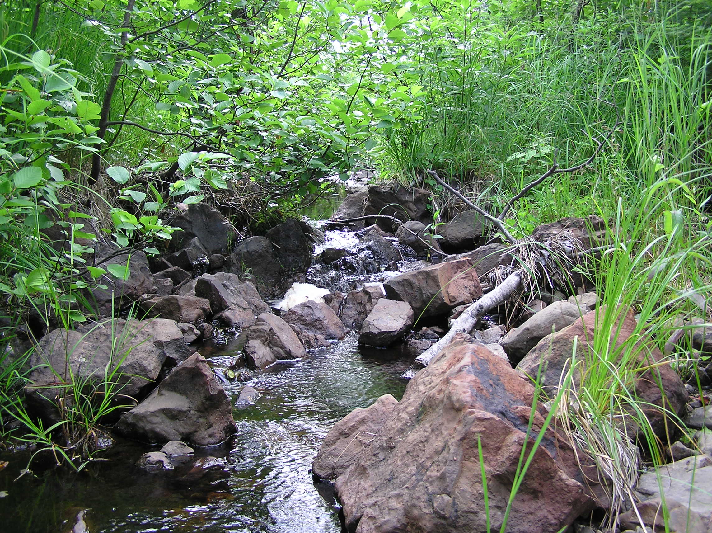 A good view of why following the creek was so difficult near the lake. The vegetation was literally overgrowing over the creek - still a lot of water was flowing. |