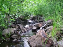 But Dale is correct and we quickly run into the creek. So close to Owl Lake there is more water in the creek but it is harder to follow since the banks tend to be swampy and overgrown. |