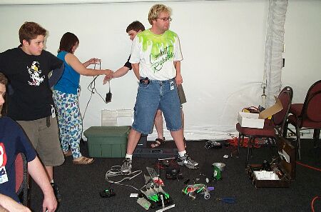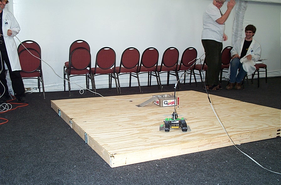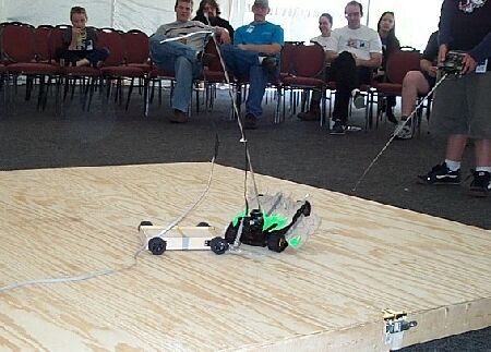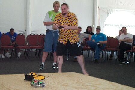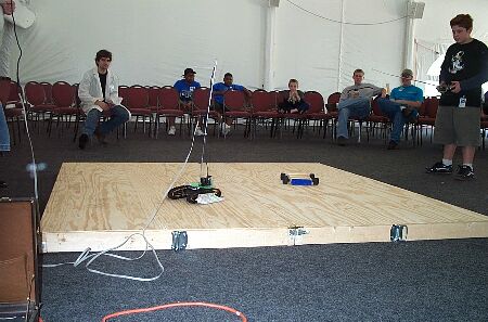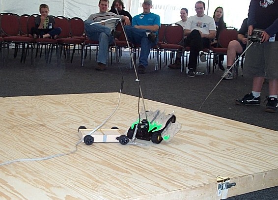 | There were a number of tracked bots this time. While they had power, traction and were almost impossible to push around, in the end they lost out to Greg's superior driving skills. | |
