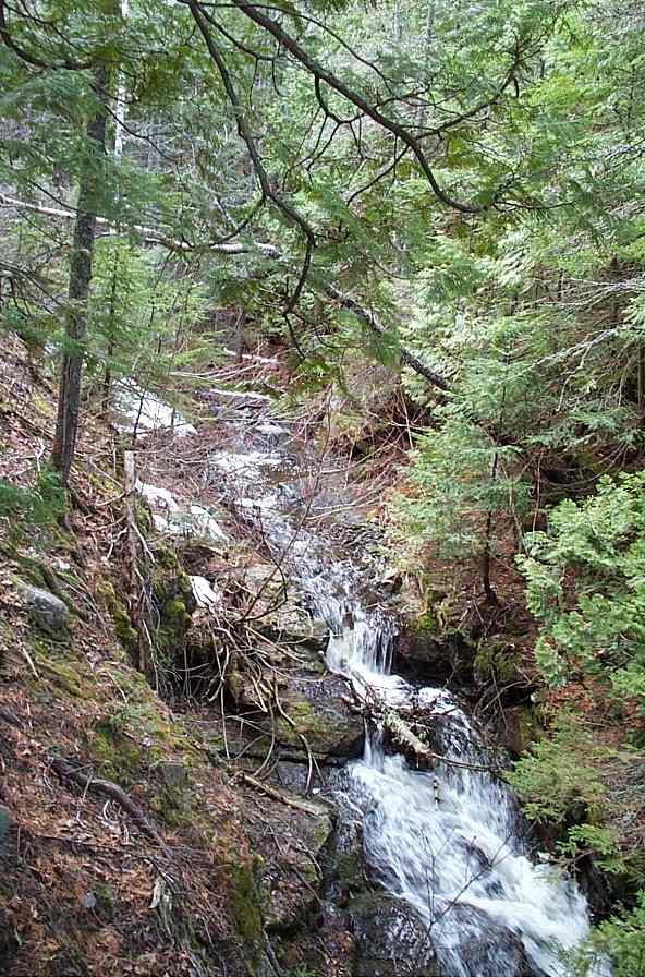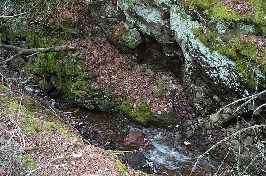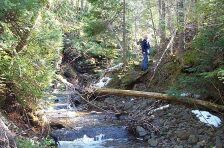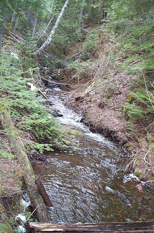 | After the dam the stream widens. This shot is from where the logging road crosses the stream. We now enter Guyland. | |