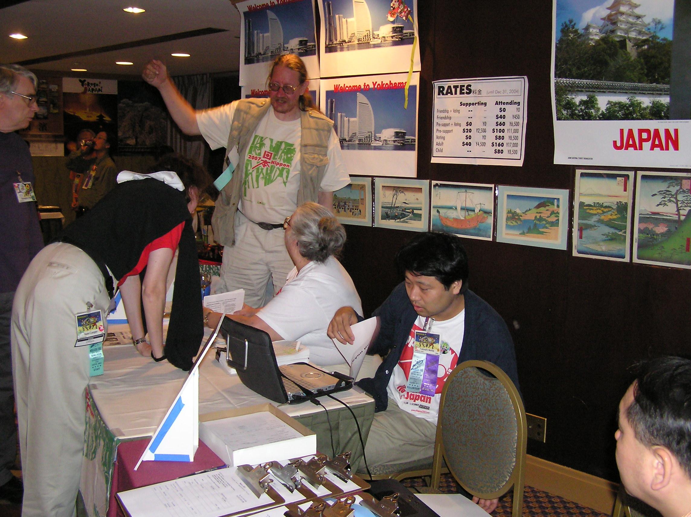Japan won the bid for the 2007 Worldcon and they were really happy campers. In spite of the language difference interest was high in going to this con and it looks like it will be big for an overseas worldcon. The fen from Japan were very nice and worked like hell to get the bid. |