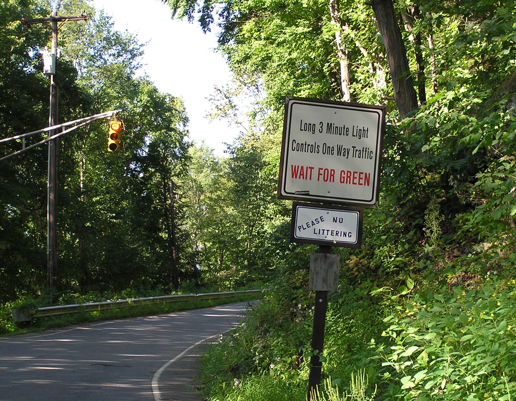 The first stretch of the road is single lane and you have to wait your turn. This was our first clue that this little detour might take a bit longer then we figured. While not as exciting as some of the roads out west this part of the road was carved out of the side of the mountain. |